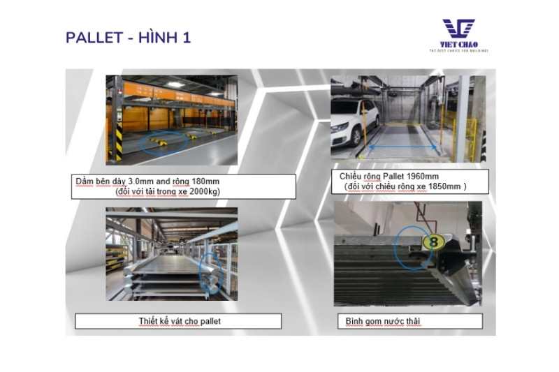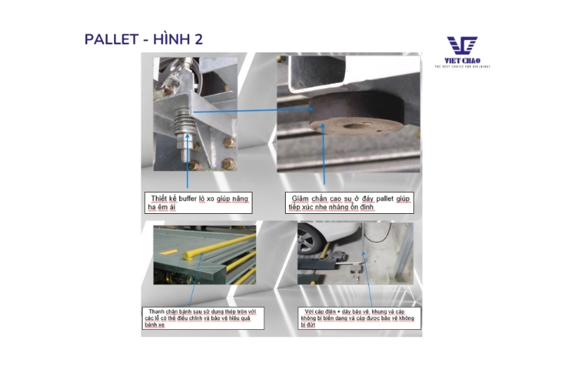 – Nguyên lý hoạt động: Hệ thống đỗ xe nâng và trượt bằng cách di chuyển pallet để đưa xe vào hoặc lấy xe ra. Pallet có thể đi xuống hoặc lên để hoàn thành việc đưa ô tô vào/ra hệ thống. Đây là hệ thống đỗ xe rất thông dụng và phổ biến trên thị trường hiện nay.