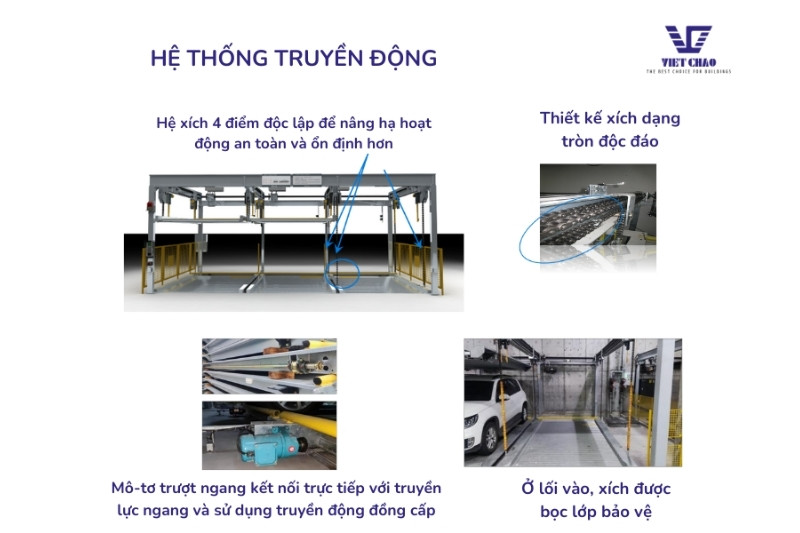 – Điều khiển động cơ bằng cách biến áp và biến tần (VVVF)  Phương thức điều khiển vi tính, giúp toàn bộ gara hoạt động với độ rung thấp, tiếng ồn thấp, chi phí thấp và hiệu quả cao.
